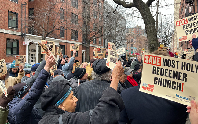 On the secular front, local officials and preservation groups immediately responded to the threat to Most Holy Redeemer by rallying to get it landmarked, which would prevent demolition and perhaps hinder sale.