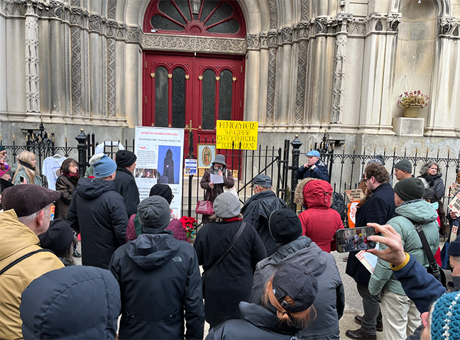 And yet the church was briefly opened for one day on Jan. 17, for a funeral service, triggering Hale’s ire at what he sees as diocesan deceit. At a Feb. 21 save-the-church event at Mary House, the Catholic Worker residence and soup kitchen, Hale declared, “Speaking as an attorney, I’m going to tell you right now: Anybody who’s facing liability [issues] isn’t going to open the place up…for a funeral where people can walk around willy-nilly as they see fit. It’s just not going to happen.”