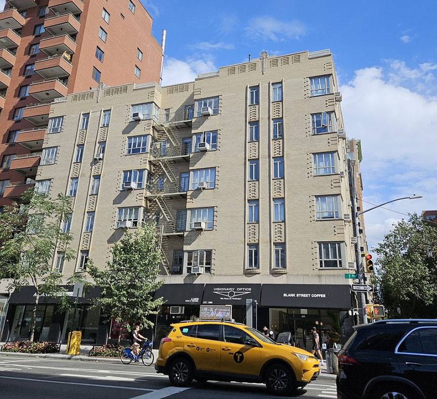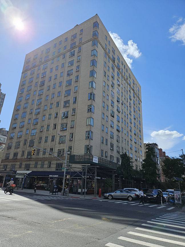225 West 25th Street, finished in 1939, is a typical six-story Art Deco apartment building, with corner windows and beige bricks alternative with alternating beige and tan bricks. It sports a curved entrance flanked by two columns that leads to a mirrored lobby.
